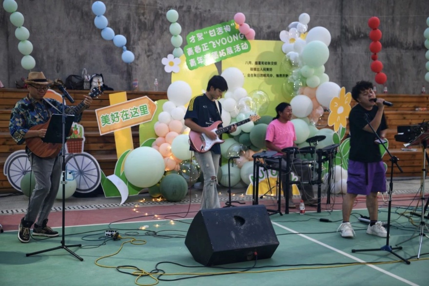 星空下,勁歌熱舞點(diǎn)燃現(xiàn)場(chǎng)?!案首稍儭鼻嗄陚兏髡顾L(zhǎng)、各顯其能,開(kāi)啟了一場(chǎng)青春音樂(lè)風(fēng)暴。伴隨著巔峰樂(lè)隊(duì)的演奏,青年們積極參與猜歌大作戰(zhàn)、完成樂(lè)隊(duì)組建及牌排練公演,傳統(tǒng)樂(lè)曲、流行音樂(lè)、潮流嘻哈、樂(lè)隊(duì)搖滾……多元歌曲悉數(shù)亮相,整個(gè)現(xiàn)場(chǎng)沉浸在歡樂(lè)的海洋中。